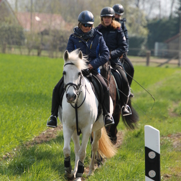 Mylady: fertig zum Ausritt mit einer Jugendlichen des Kurses "Pferdeschule".